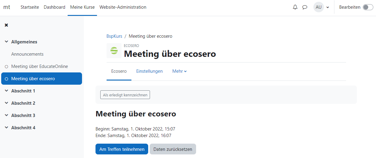 Live-Kurse und Schulungen mit dem ecosero Moodle-Plugin